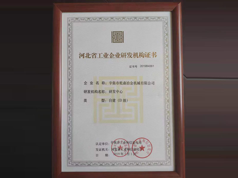 河北省工業企業研發機構證書
